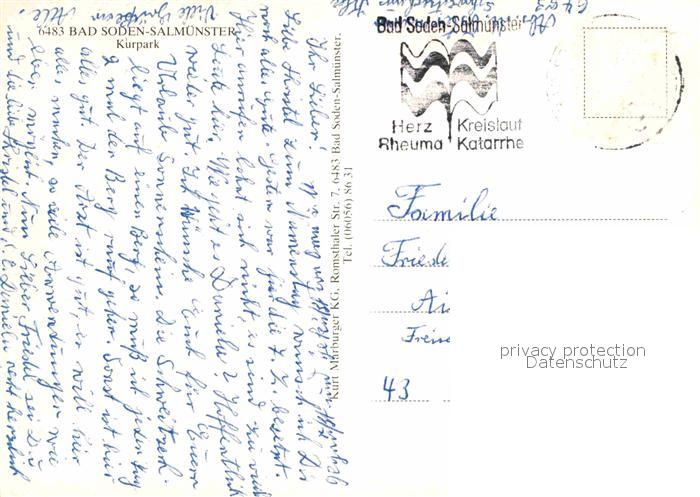 72744928 alte Postkarte Bad Soden-Salmuenster Kurpark Wasserspiele Sanatorium postalisch gelaufen Erhaltung siehe scans [FriedD77] KatCode: 11110006435002