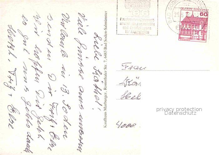 72744926 alte Postkarte Bad Soden-Salmuenster Kurpark Wasserspiele Schwimmbad Stadtbild mit Kurhaeusern postalisch gelaufen Erhaltung siehe scans [FriedD77] KatCode: 11110006435002
