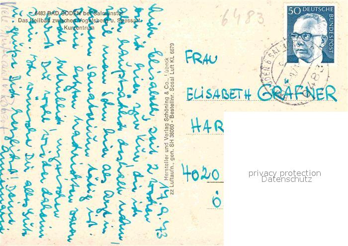 72837306 alte Postkarte Bad Soden-Salmuenster Kurzentrum Fliegeraufnahme postalisch gelaufen Erhaltung siehe scans [WerneD78] KatCode: 11110006435002