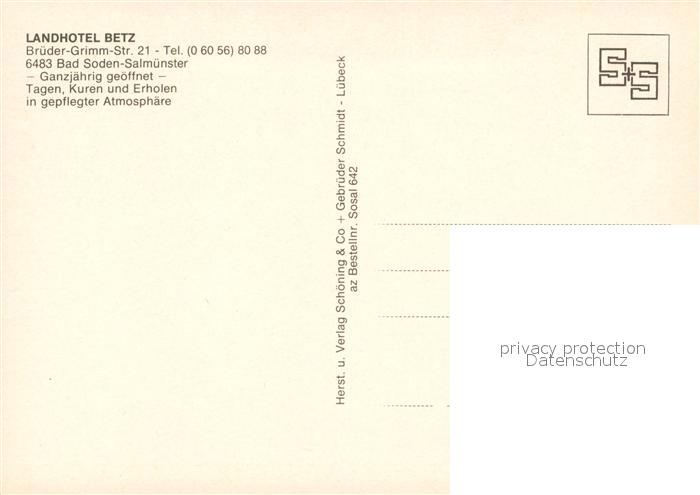 73055771 Bad Soden-Salmuenster Landhotel Betz postalisch nicht gelaufen Erhaltung siehe scans [NatalD47] KatCode: 11110006435002