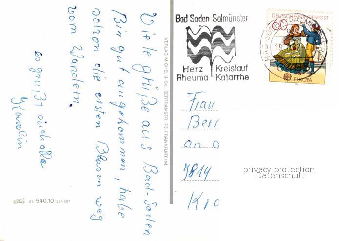 72843612 alte Postkarte Bad Soden-Salmuenster Ortspartien postalisch gelaufen Erhaltung siehe scans [LiesaD40] KatCode: 11110006435002
