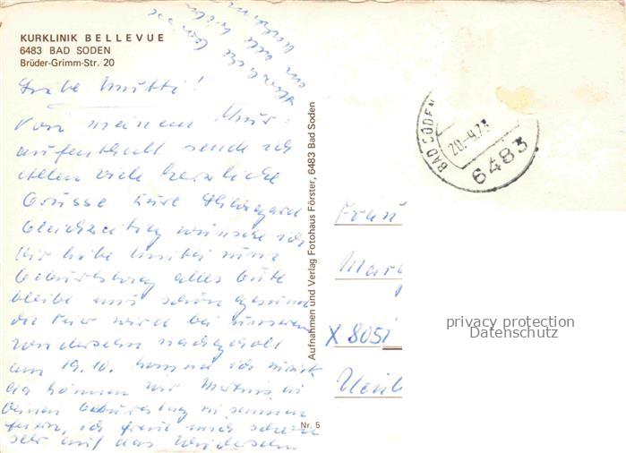 74028382 alte Postkarte Bad Soden-Salmuenster Panorama Kurklinik Bellevue Hallenbad Aufenthaltsraum postalisch gelaufen Erhaltung siehe scans [FriedD77] KatCode: 11110006435002