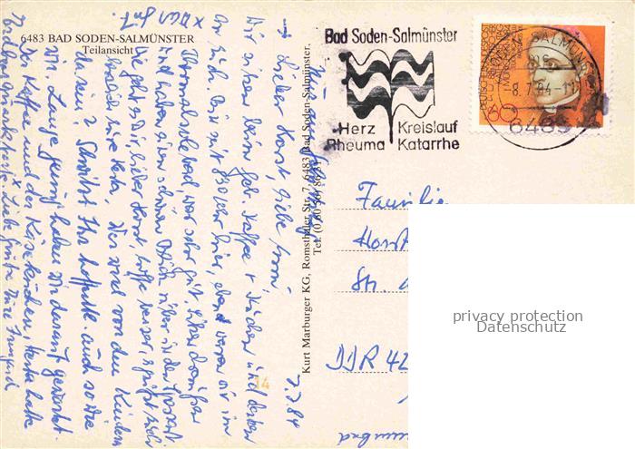 74028140 alte Postkarte Bad Soden-Salmuenster Panorama Teilansicht postalisch gelaufen Fliegeraufnahme Erhaltung siehe scans [FriedD77] KatCode: 11110006435002