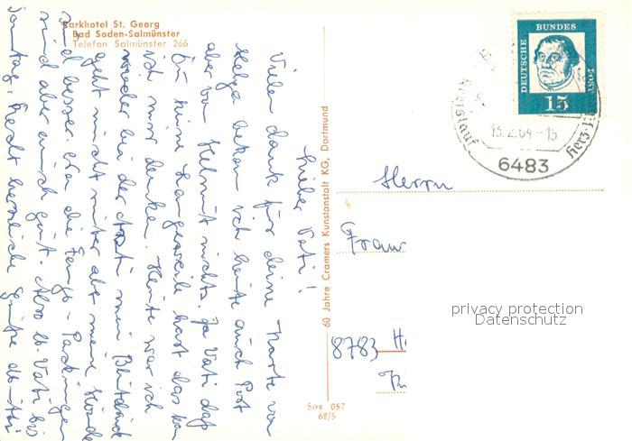 73715014 alte Postkarte Bad Soden-Salmuenster Parkhotel St. Georg Aussenansicht postalisch gelaufen Erhaltung siehe scans [LiesaD40] KatCode: 11110006435002
