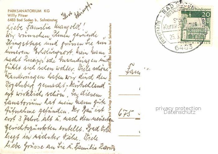 72757634 alte Postkarte Bad Soden-Salmuenster Parksanatorium KG Aufenthaltsraum Speisesaal postalisch gelaufen Erhaltung siehe scans [WerneD78] KatCode: 11110006435002