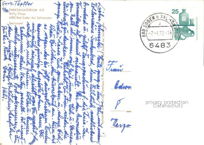 72464966 alte Postkarte Bad Soden-Salmuenster Parksanatorium Speisesaal postalisch gelaufen Erhaltung siehe scans KatCode: 11110006435002