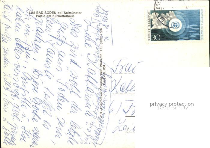 alte Postkarte Bad Soden-Salmuenster Partie am Kurmittelhaus postalisch gelaufen Erhaltung siehe scans