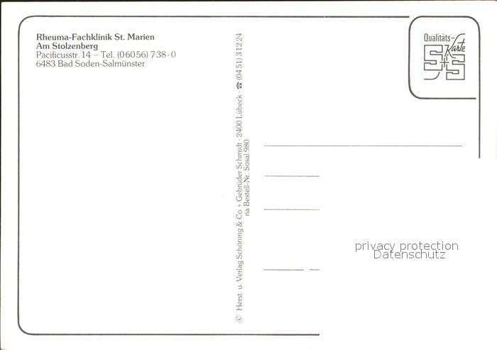 71991799 Bad Soden-Salmuenster Rheuma Fachklinik St Mariena Am Stolzenberg postalisch nicht gelaufen Erhaltung siehe scans KatCode: 11110006435002