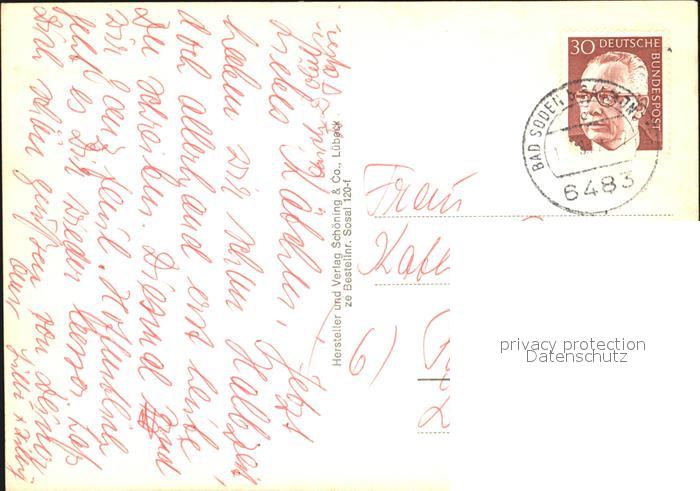 alte Postkarte Bad Soden-Salmuenster Sanatorium Sankt Georg Park Sanatorium Quellenhof Haus Franken und Richter postalisch gelaufen Erhaltung siehe scans