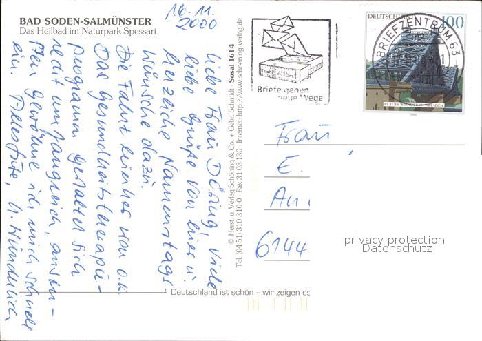 alte Postkarte Bad Soden-Salmuenster Schleifrashof Kurpark Huttenschloss postalisch gelaufen Erhaltung siehe scans