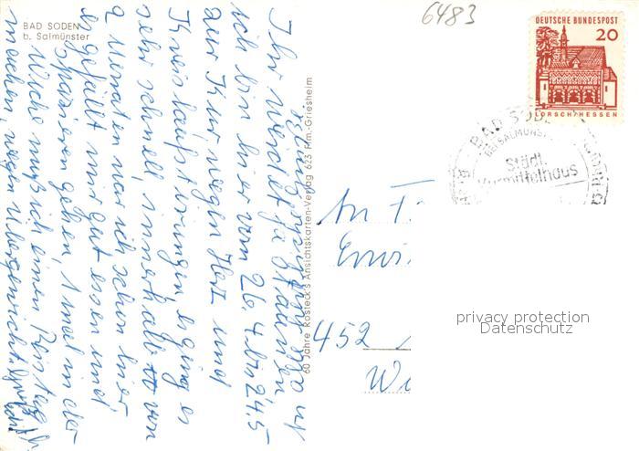 72986273 alte Postkarte Bad Soden-Salmuenster Teilansichten Strassenpartie Altstadt Marktplatz Rathaus Kirche postalisch gelaufen Erhaltung siehe scans [FriedD77] KatCode: 11110006435002