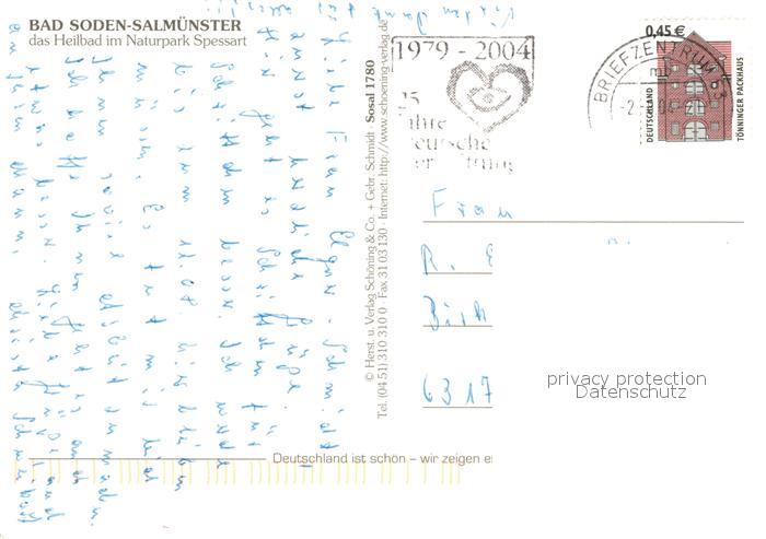 73208919 alte Postkarte Bad Soden-Salmuenster Thermal Sole Bad Kurpark Rathausplatz Kurmittelhaus Brunnen postalisch gelaufen Erhaltung siehe scans [WerneD78] KatCode: 11110006435002