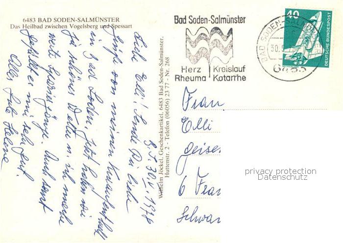 73125278 alte Postkarte Bad Soden-Salmuenster Thermal-Sole-Bewegungsbad postalisch gelaufen Erhaltung siehe scans [NatalD47] KatCode: 11110006435002