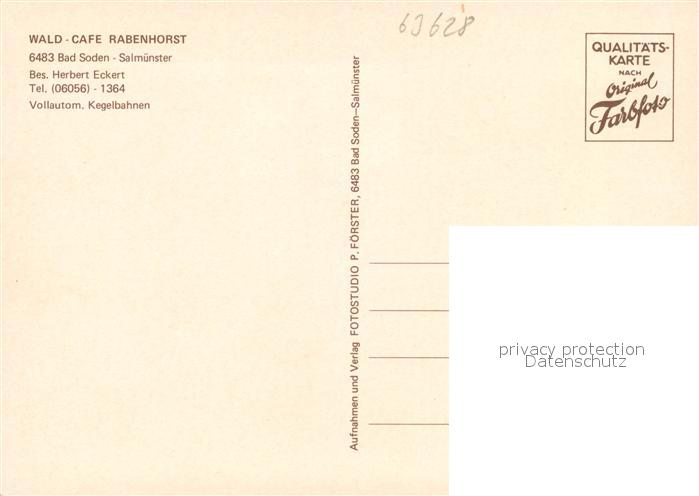 73569982 Bad Soden-Salmuenster Wald Cafe Rabenhorst Gastraeume Kegelbahn postalisch nicht gelaufen Erhaltung siehe scans [WerneD78] KatCode: 11110006435002