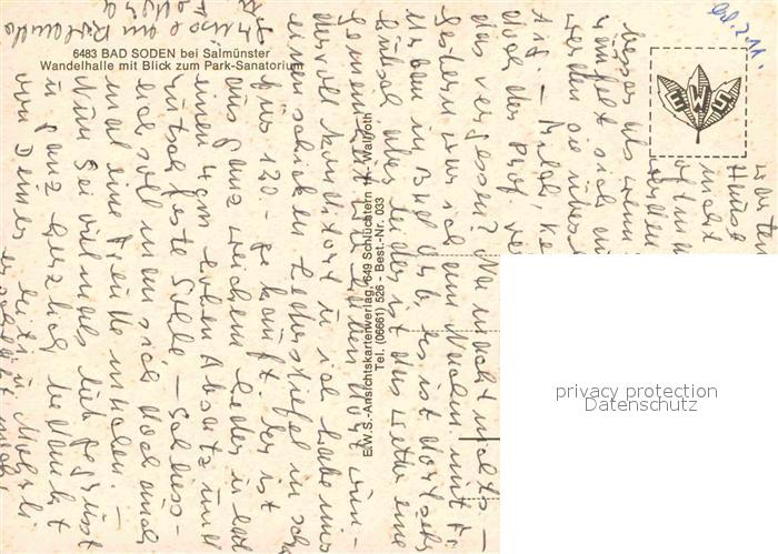 72882914 Bad Soden -Salmuenster Wandelhalle Park Sanatorium postalisch nicht gelaufen Erhaltung siehe scans [AndreD76] KatCode: 11110006435002