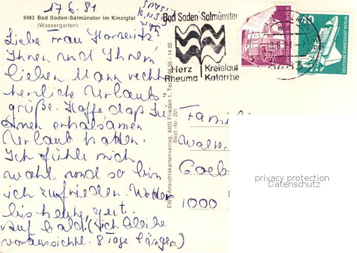 72929575 alte Postkarte Bad Soden-Salmuenster Wassergarten Schwaene postalisch gelaufen Erhaltung siehe scans [LiesaD40] KatCode: 11110006435002