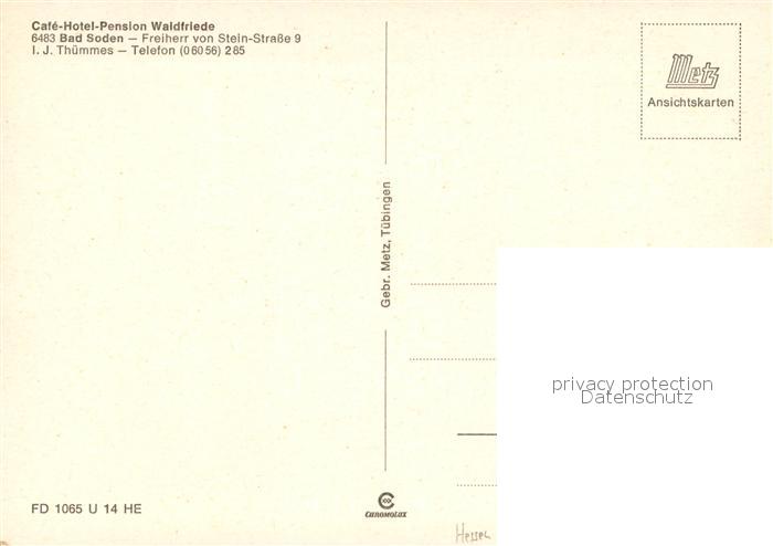 73649261 Bad Soden Stolzenberg Cafe Hotel Pension Waldfriede Restaurant postalisch nicht gelaufen Erhaltung siehe scans [FriedD77] KatCode: 11110006435002