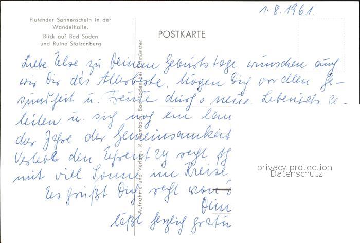 72125052 Bad Soden Stolzenberg Flutender Sonnenschein in der Wandelhalle Ruine postalisch nicht gelaufen Erhaltung siehe scans KatCode: 11110006435002