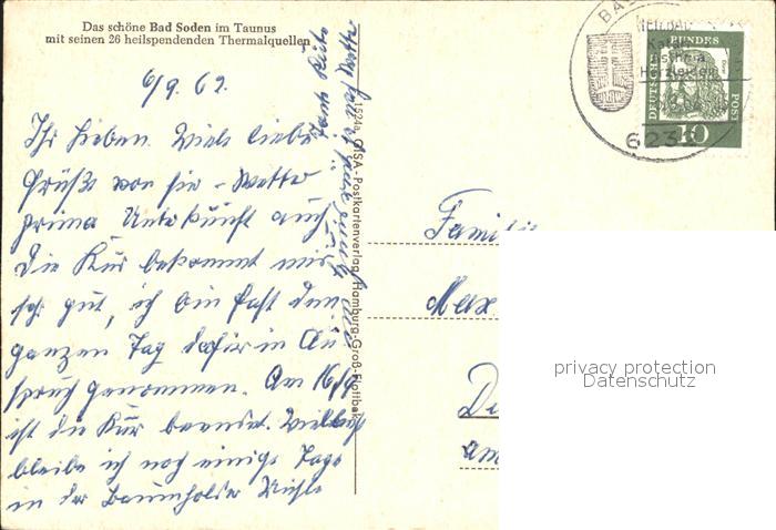 72229860 alte Postkarte Bad Soden Taunus postalisch gelaufen Erhaltung siehe scans KatCode: 11110006436001