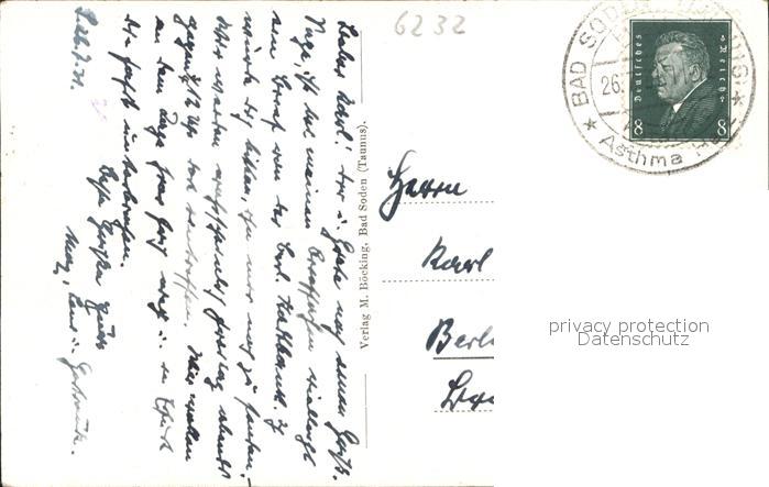 71573333 alte Postkarte Bad Soden Taunus postalisch gelaufen Erhaltung siehe scans KatCode: 11110006436001