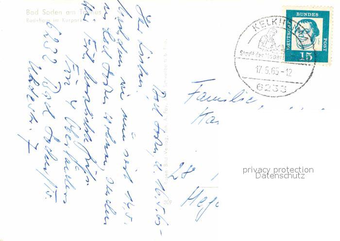 72796373 alte Postkarte Bad Soden Taunus Badehaus im Kurhapr postalisch gelaufen Erhaltung siehe scans [LiesaD40] KatCode: 11110006436001