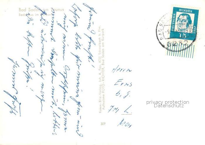 73161655 alte Postkarte Bad Soden Taunus Badehaus im Kurpark postalisch gelaufen Erhaltung siehe scans [WerneD78] KatCode: 11110006436001