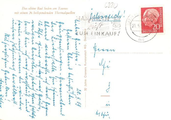73936546 alte Postkarte Bad Soden Taunus Badehaus Kurhaus Inhalatorium Trinkhalle postalisch gelaufen Erhaltung siehe scans [FriedD77] KatCode: 11110006436001