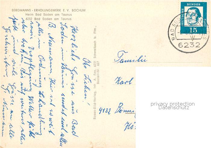 73833802 alte Postkarte Bad Soden Taunus Bergmanns Erholungswerk Heim Bad Soden postalisch gelaufen Erhaltung siehe scans [FriedD77] KatCode: 11110006436001