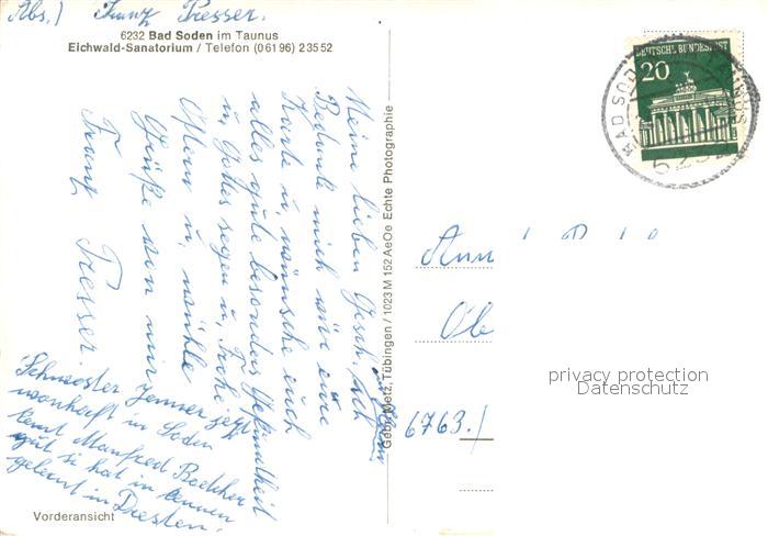 73647697 alte Postkarte Bad Soden Taunus Eichwald Sanatorium postalisch gelaufen Erhaltung siehe scans [WerneD78] KatCode: 11110006436001