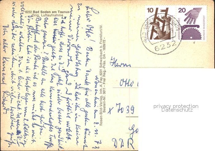 alte Postkarte Bad Soden Taunus Fliegeraufnahme postalisch gelaufen Erhaltung siehe scans