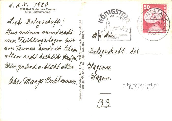 72170399 alte Postkarte Bad Soden Taunus Fliegeraufnahme postalisch gelaufen Erhaltung siehe scans KatCode: 11110006436001
