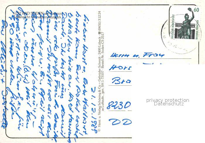 72725634 alte Postkarte Bad Soden Taunus Fliegeraufnahme mit neuem Kurpark postalisch gelaufen Erhaltung siehe scans [LiesaD40] KatCode: 11110006436001