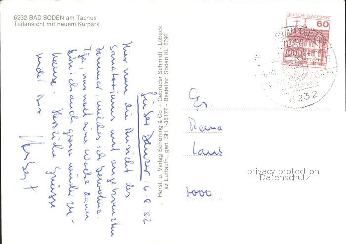 72176763 alte Postkarte Bad Soden Taunus Fliegeraufnahme mit neuem Kurpark postalisch gelaufen Erhaltung siehe scans KatCode: 11110006436001
