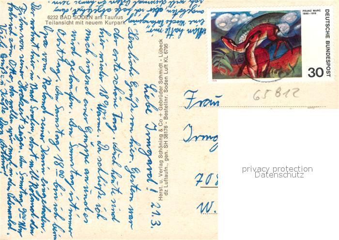 73540240 alte Postkarte Bad Soden Taunus Fliegeraufnahme mit neuem Kurpark postalisch gelaufen Erhaltung siehe scans [WerneD78] KatCode: 11110006436001