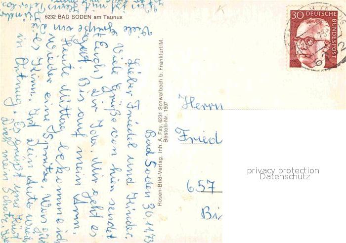 72865454 alte Postkarte Bad Soden Taunus Fontaene Kirche postalisch gelaufen Erhaltung siehe scans [FriedD77] KatCode: 11110006436001