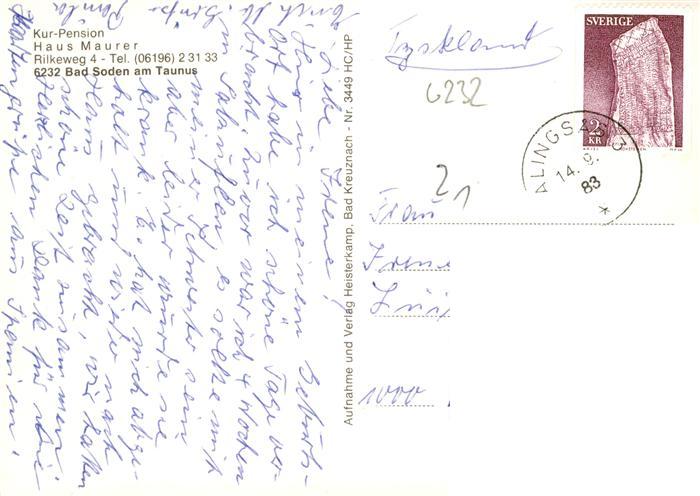 73935828 alte Postkarte Bad Soden Taunus Haus Maurer Kurpension postalisch gelaufen Erhaltung siehe scans [WerneD78] KatCode: 11110006436001
