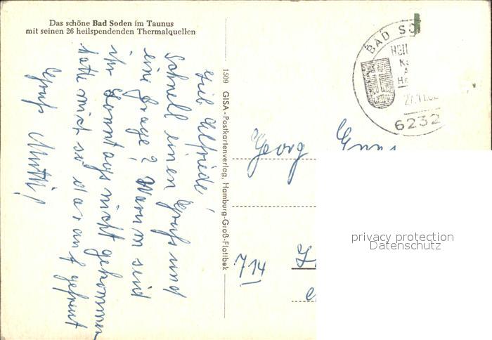 72054075 alte Postkarte Bad Soden Taunus Inhalatorium postalisch gelaufen Erhaltung siehe scans KatCode: 11110006436001