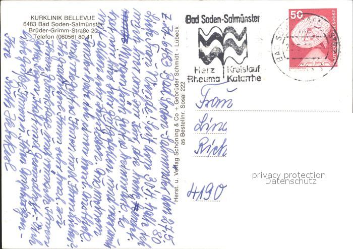 72276944 alte Postkarte Bad Soden Taunus Kurklinik Bellevue postalisch gelaufen Erhaltung siehe scans KatCode: 11110006436001