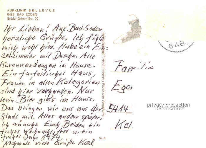 72944023 alte Postkarte Bad Soden Taunus Kurklinik Bellevue postalisch gelaufen Erhaltung siehe scans [KathaD81] KatCode: 11110006436001