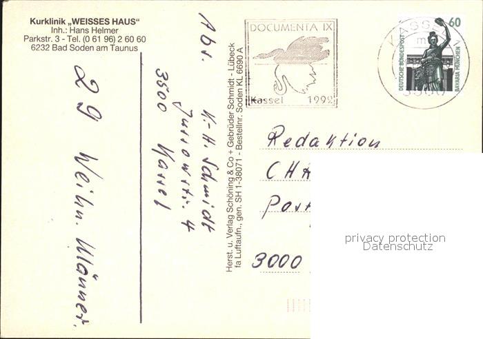 72465666 alte Postkarte Bad Soden Taunus Kurklinik Weisses Haus Fliegeraufnahme postalisch gelaufen Erhaltung siehe scans KatCode: 11110006436001