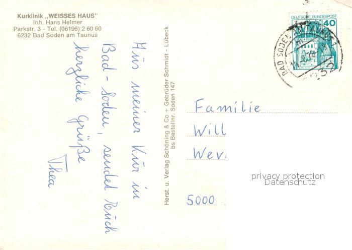 73721644 alte Postkarte Bad Soden Taunus Kurklinik Weisses Haus Speisesaal Hallenbad Kaminzimmer postalisch gelaufen Erhaltung siehe scans [WerneD78] KatCode: 11110006436001