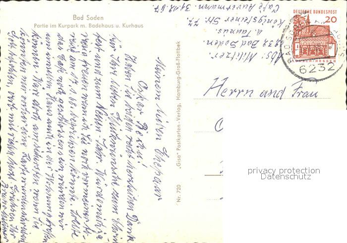 72314750 alte Postkarte Bad Soden Taunus Kurpark Badehaus Kurhaus postalisch gelaufen Erhaltung siehe scans KatCode: 11110006436001