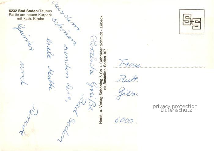 73223805 Bad Soden Taunus Neuer Kurpark Brunnen Kirche postalisch nicht gelaufen Erhaltung siehe scans [LiesaD40] KatCode: 11110006436001