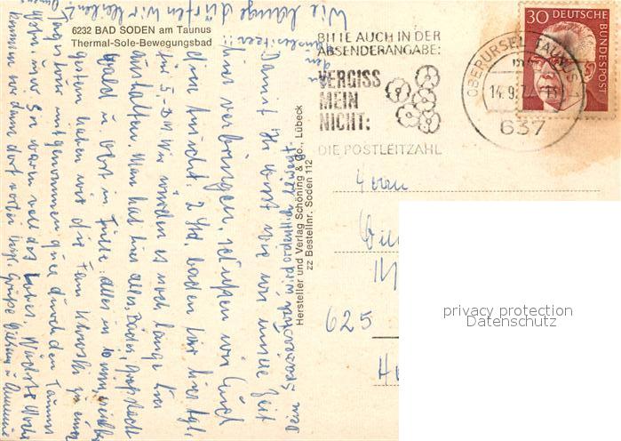 73196684 alte Postkarte Bad Soden Taunus Thermal-Sole-Bewegungsbad postalisch gelaufen Erhaltung siehe scans [NatalD47] KatCode: 11110006436001