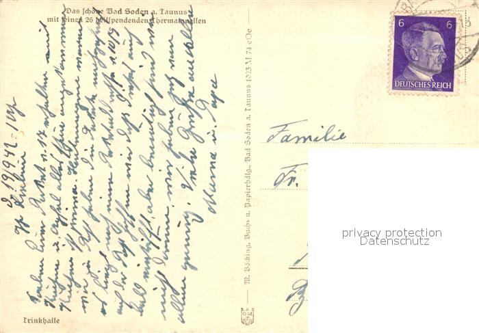 72956087 alte Postkarte Bad Soden Taunus Trinkhalle postalisch gelaufen Erhaltung siehe scans [PaolaD17] KatCode: 11110006436001