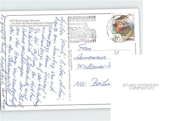 72255196 alte Postkarte Bad Sooden-Allendorf Alte Fachwerkhaeuser am Fischerstad postalisch gelaufen Erhaltung siehe scans KatCode: 11110006636001