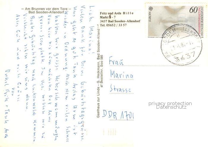 73104868 alte Postkarte Bad Sooden-Allendorf Am Brunnen vor dem Tore postalisch gelaufen Erhaltung siehe scans [WerneD78] KatCode: 11110006636001