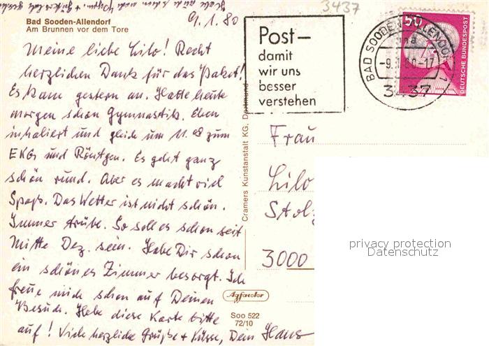 72912315 alte Postkarte Bad Sooden-Allendorf Am Brunnen vor dem Tore postalisch gelaufen Erhaltung siehe scans [FriedD77] KatCode: 11110006636001