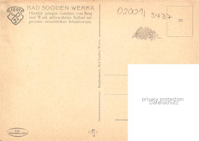73164239 Bad Sooden-Allendorf Am Schwanenteich Kupfertiefdruck postalisch nicht gelaufen Erhaltung siehe scans [FriedD77] KatCode: 11110006636001