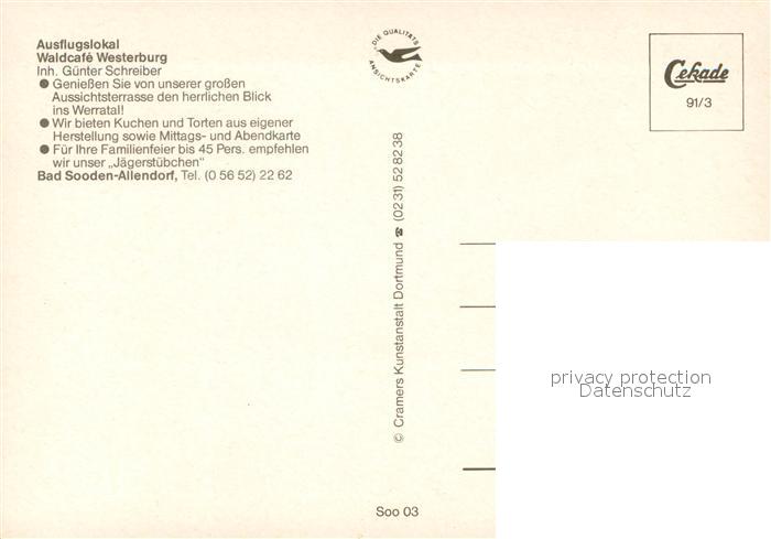 73660098 Bad Sooden-Allendorf Ausflugslokal WaldCafe Westerburg Werratal Hirsch postalisch nicht gelaufen Erhaltung siehe scans [FriedD77] KatCode: 11110006636001